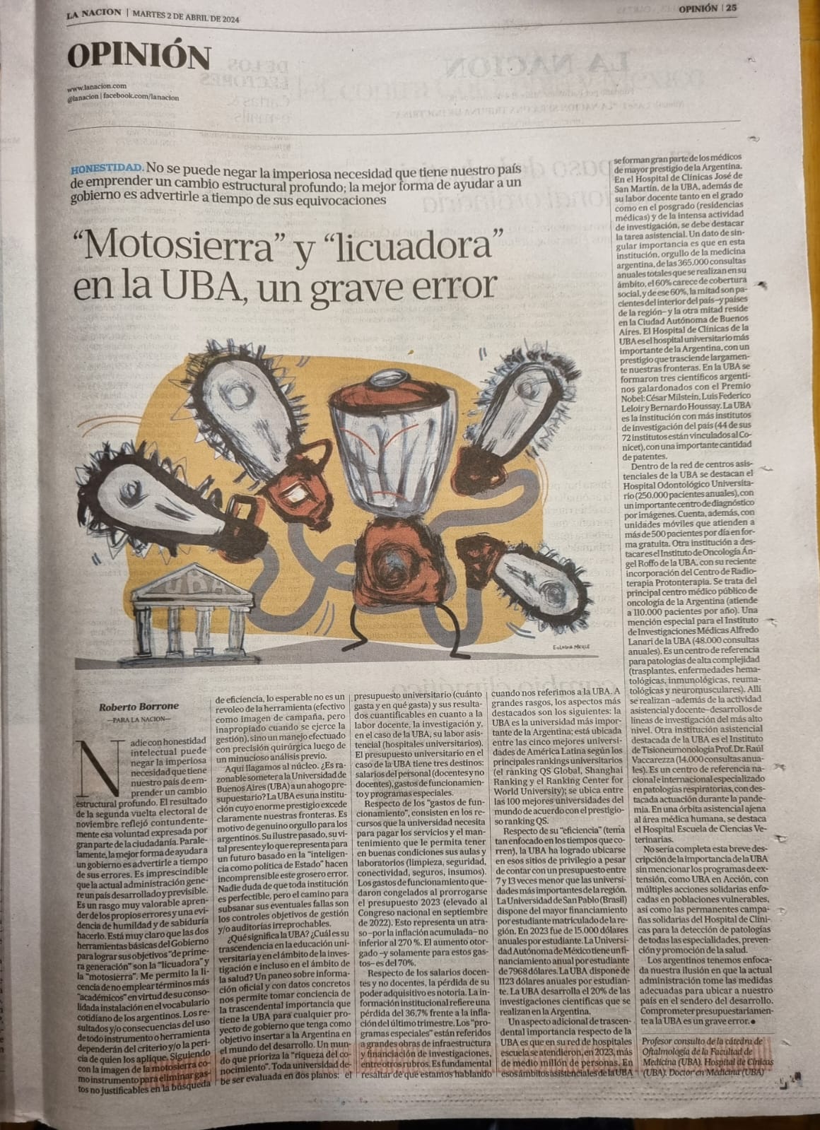 Artículo publicado en el diario La Nación por el Dr. Borrone titulada “Motosierra” y “licuadora” en la UBA, un grave error