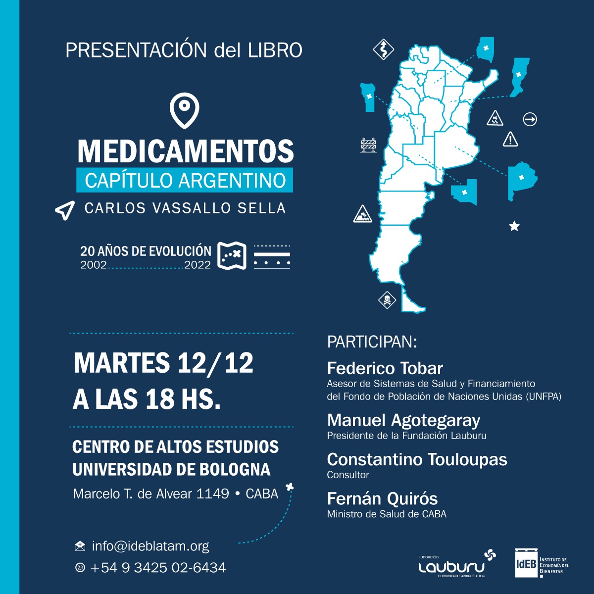 El martes 12 de diciembre a las 18 hs en el Centro de Altos Estudios UNIVERSIDAD DE BOLOGNA (Marcelo T. de Alvear 1149 – CABA) el Dr. Carlos Vassallo Sella presenta el libro MEDICAMENTOS CAPITULO ARGENTINO 20 AÑOS DE EVOLUCION 2002…2022.